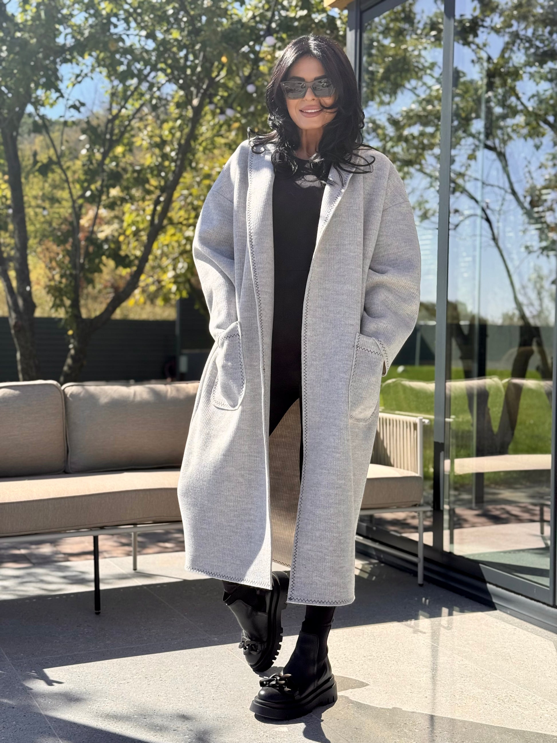 Un palton versatil și atemporal, realizat dintr-o țesătură fină cu conținut de lână, ce oferă căldură și confort la purtare. Croiala oversize, dreaptă, cu lungime medie și detalii minimaliste îl transformă într-o piesă esențială pentru sezon.