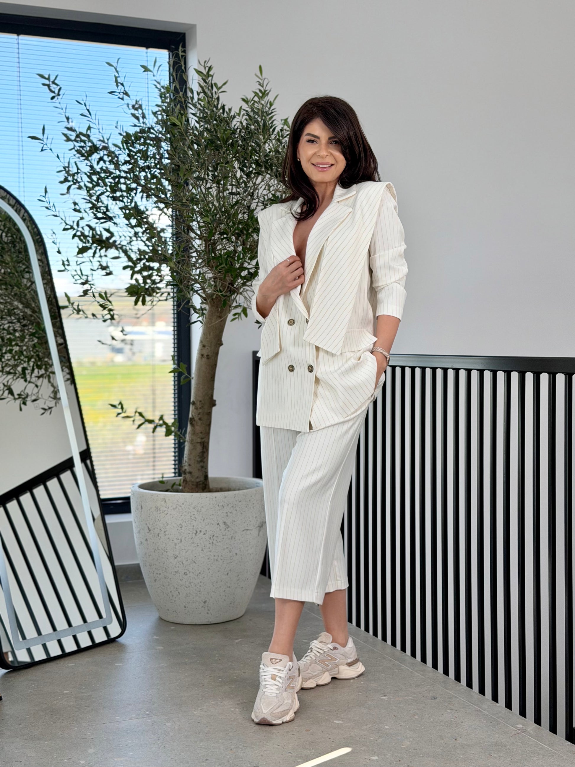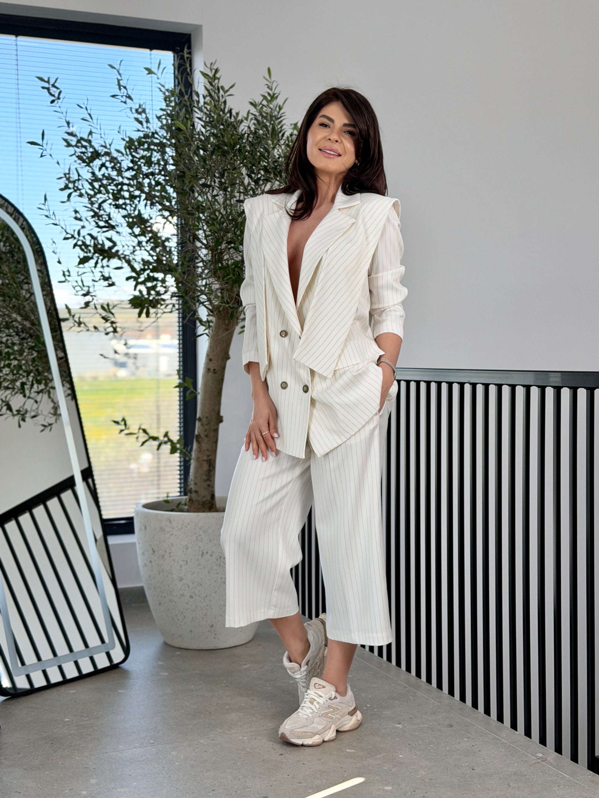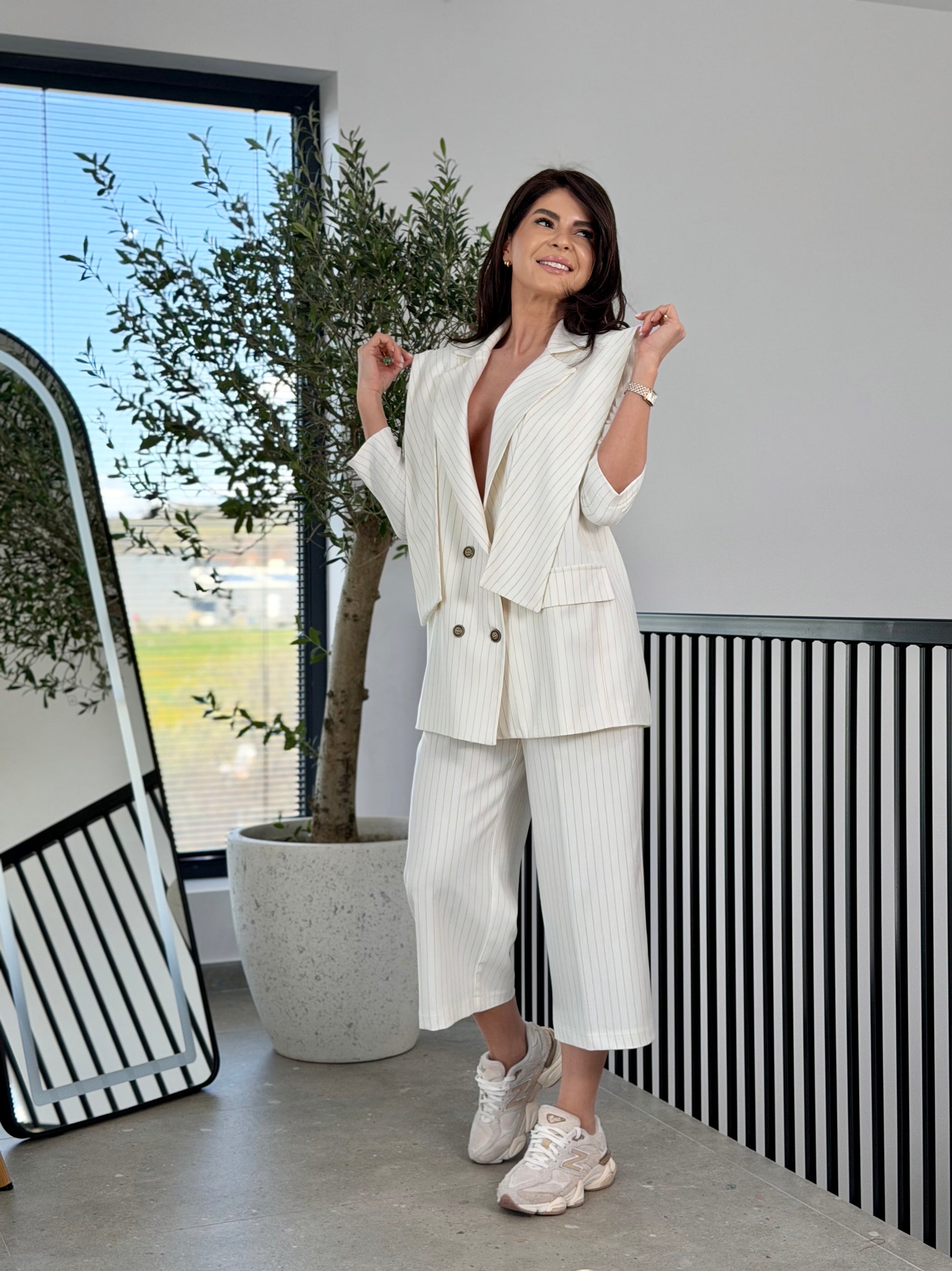Un model statement, construit în straturi, ce redefinește sacoul clasic printr-o abordare contemporană și sofisticată.