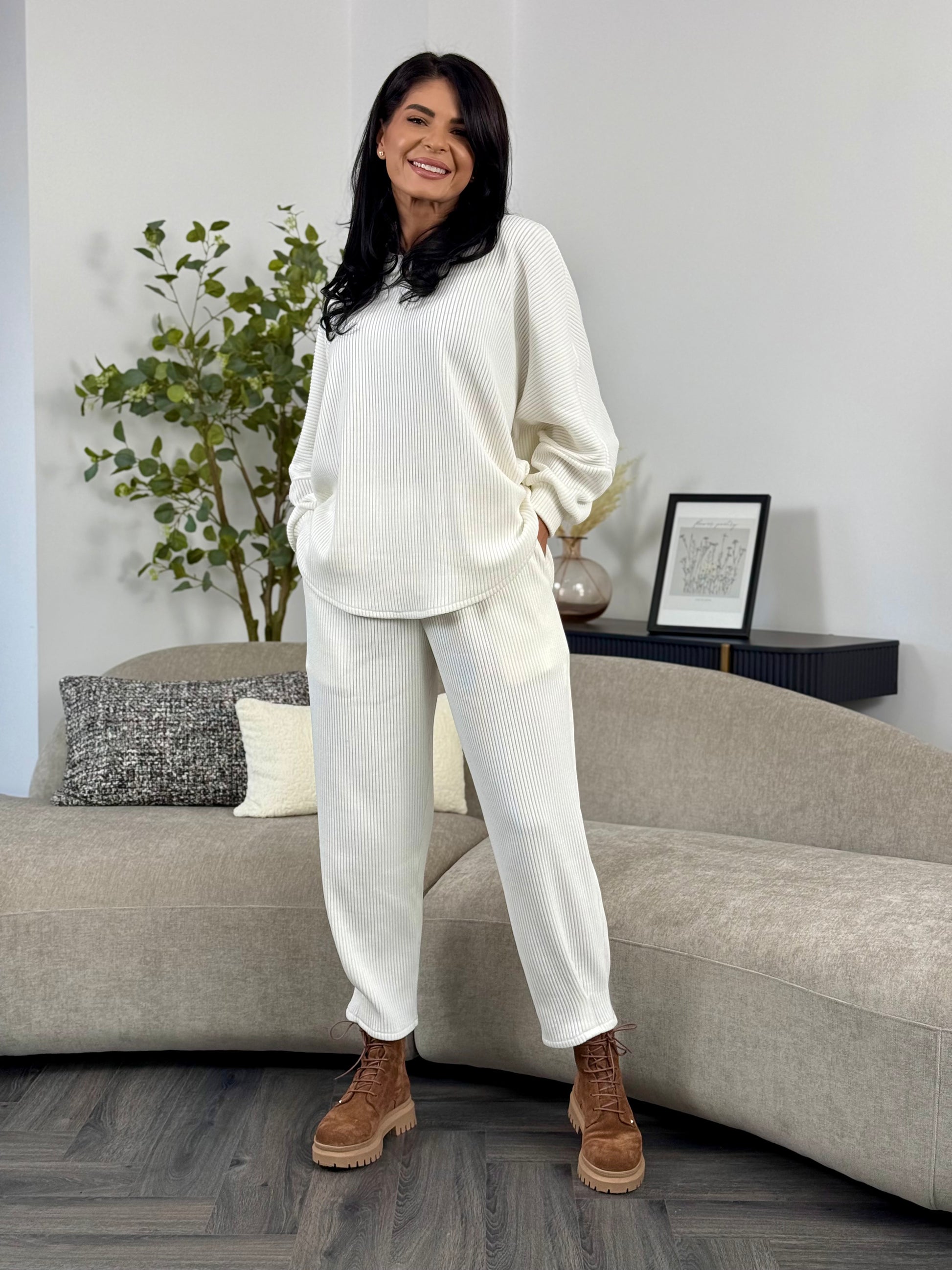 Costumul din catifea reiată aduce un mix perfect de stil și confort într-un design casual-chic. Materialul reiat este ideal pentru zilele în care vrei să te simți comod fără a renunța la eleganță. Poartă-l cu adidași pentru un outfit sport sau cu botine o ținută de toamnă.