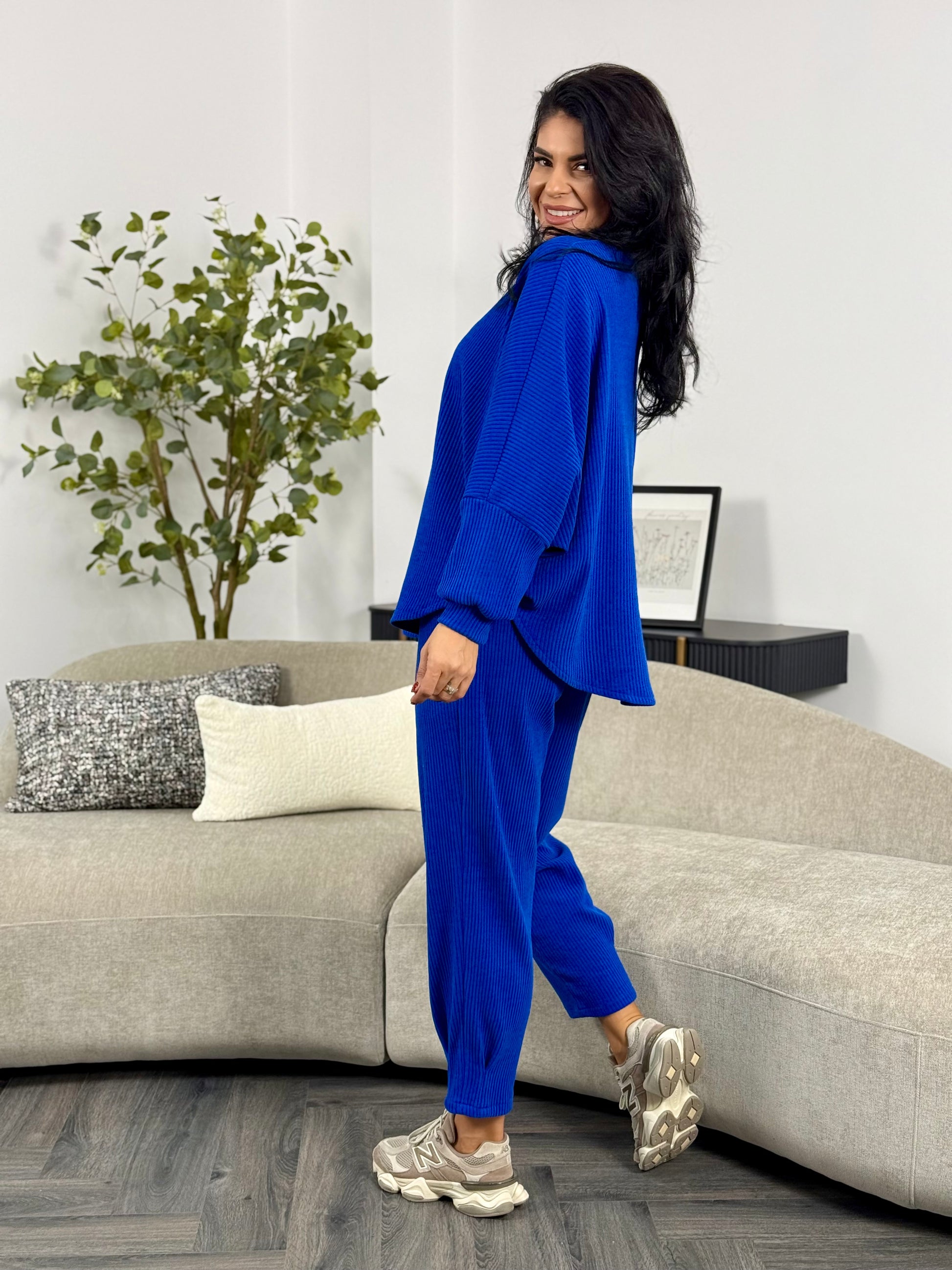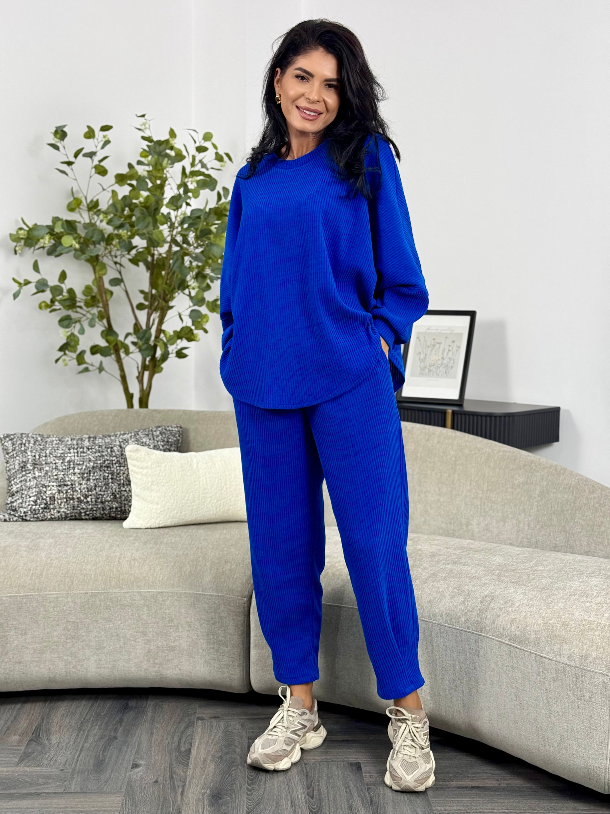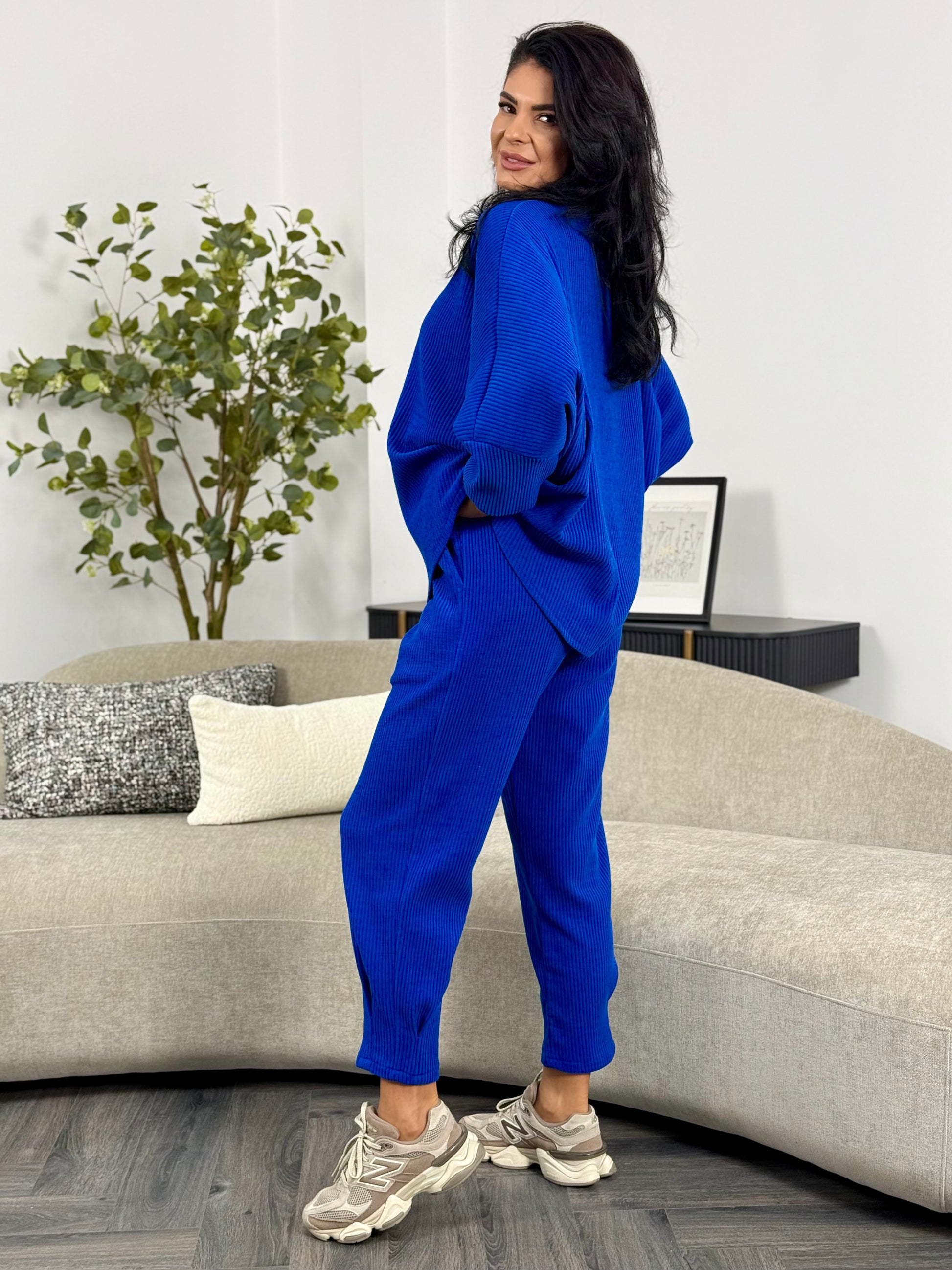 Costumul din catifea reiată aduce un mix perfect de stil și confort într-un design casual-chic. Materialul reiat este ideal pentru zilele în care vrei să te simți comod fără a renunța la eleganță. Poartă-l cu adidași pentru un outfit sport sau cu botine o ținută de toamnă.