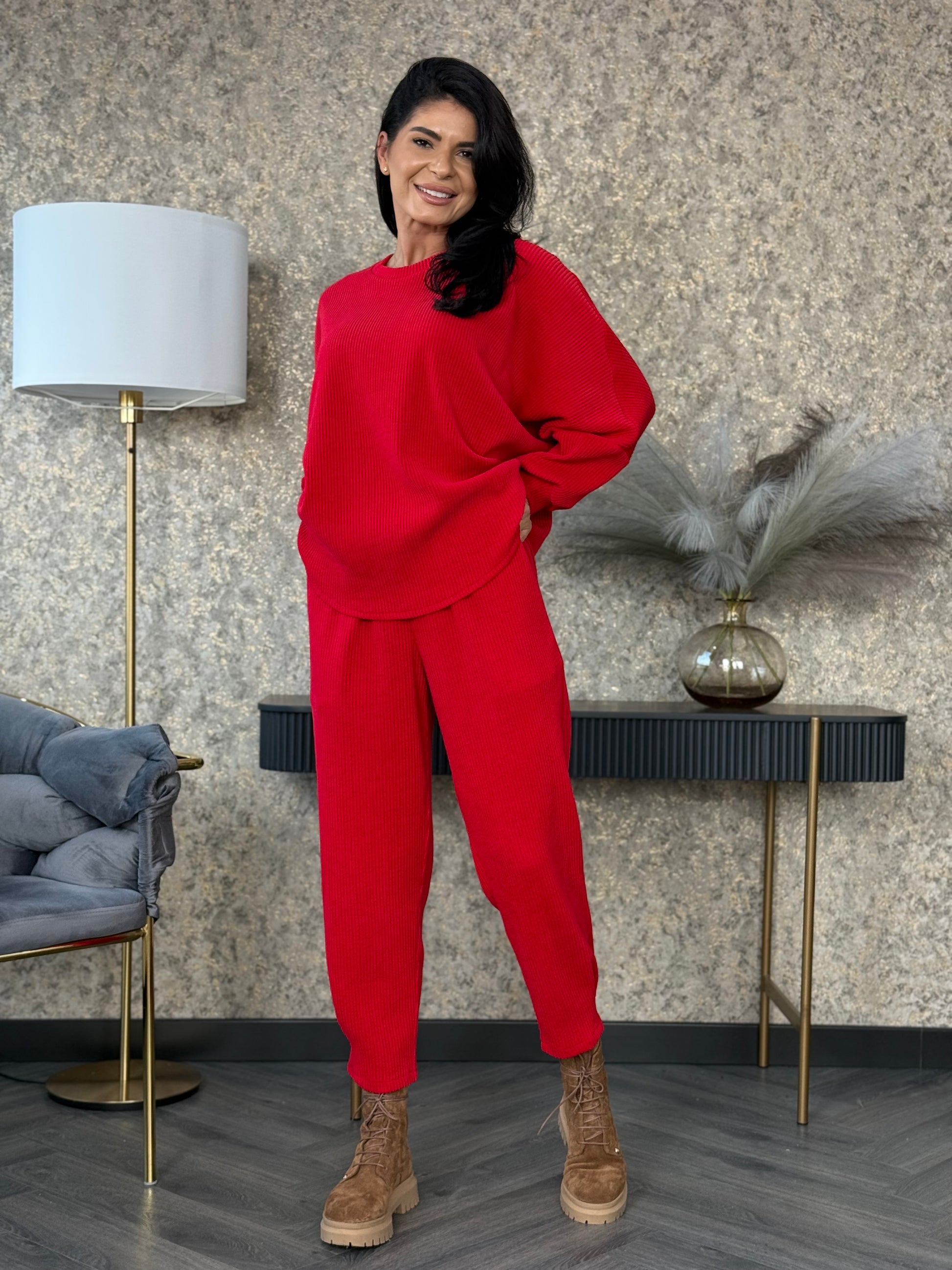 Costumul din catifea reiată aduce un mix perfect de stil și confort într-un design casual-chic. Materialul reiat este ideal pentru zilele în care vrei să te simți comod fără a renunța la eleganță. Poartă-l cu adidași pentru un outfit sport sau cu botine o ținută de toamnă.