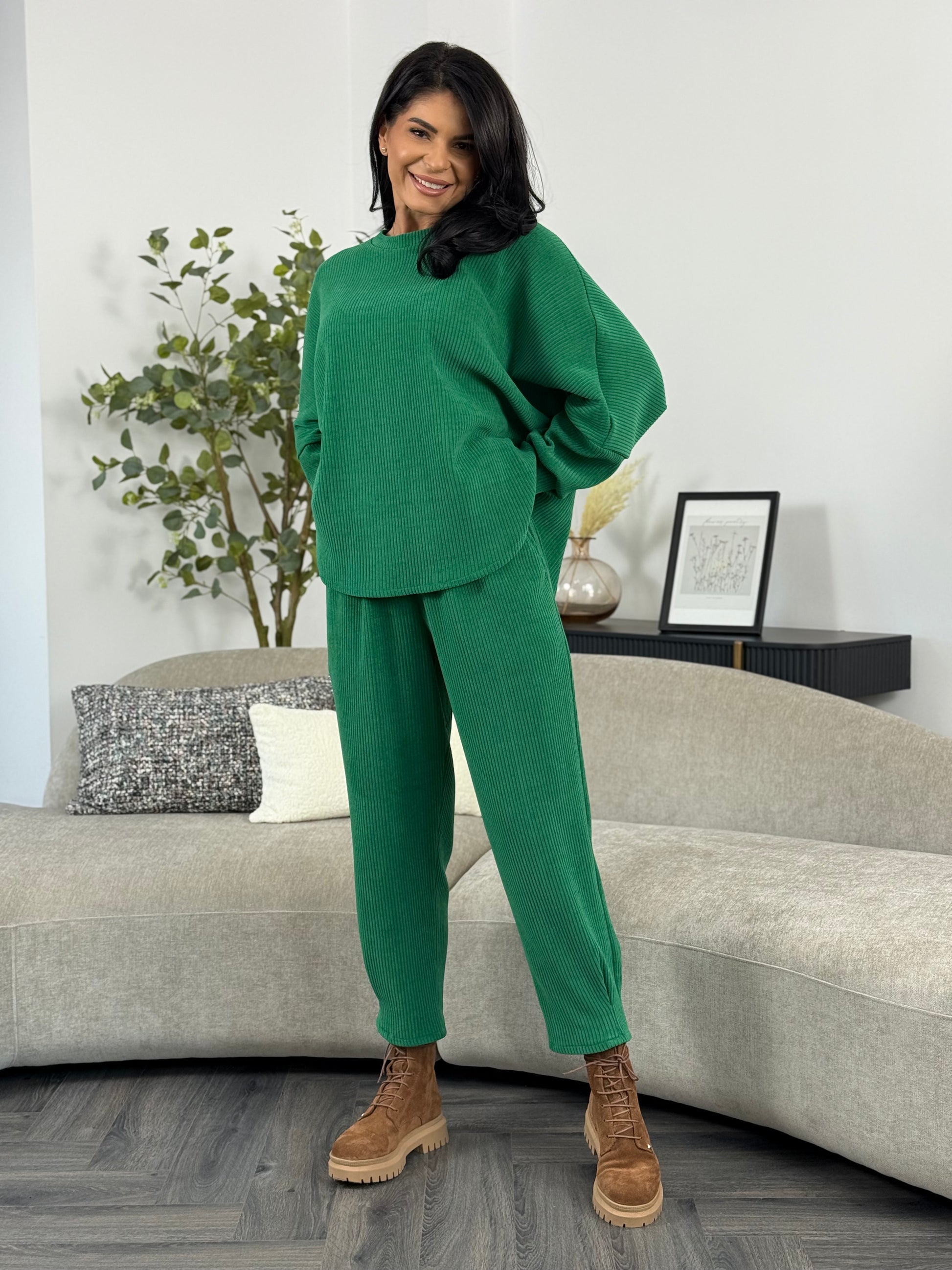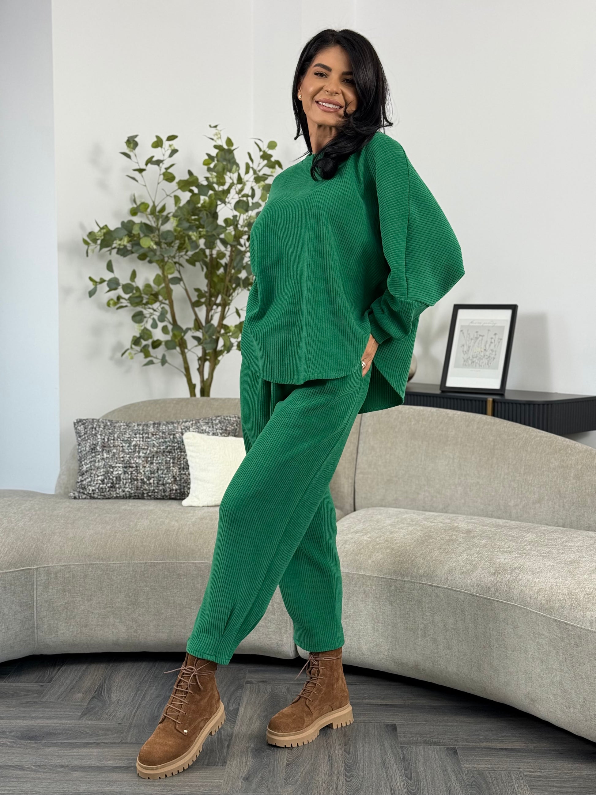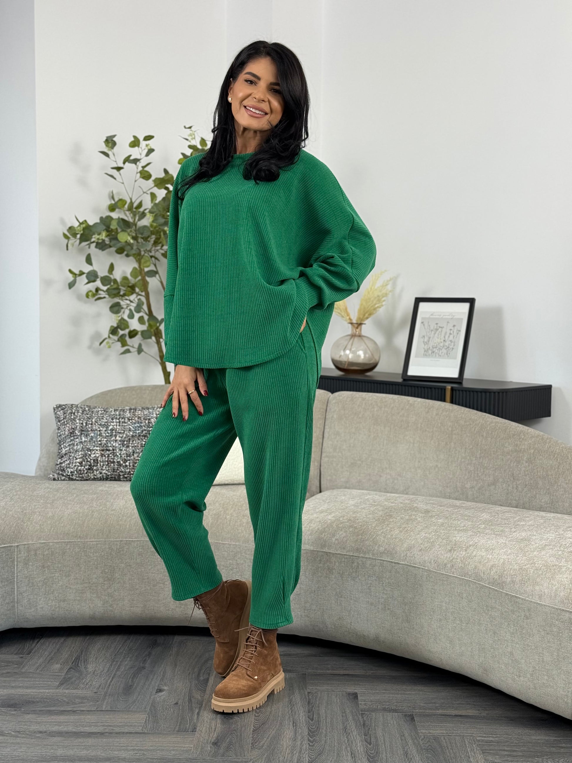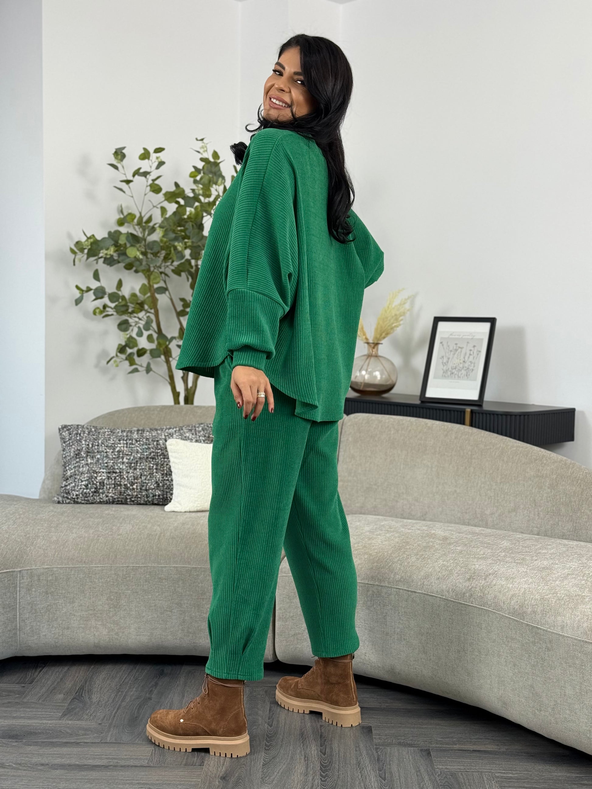 Costumul din catifea reiată aduce un mix perfect de stil și confort într-un design casual-chic. Materialul reiat este ideal pentru zilele în care vrei să te simți comod fără a renunța la eleganță. Poartă-l cu adidași pentru un outfit sport sau cu botine o ținută de toamnă.