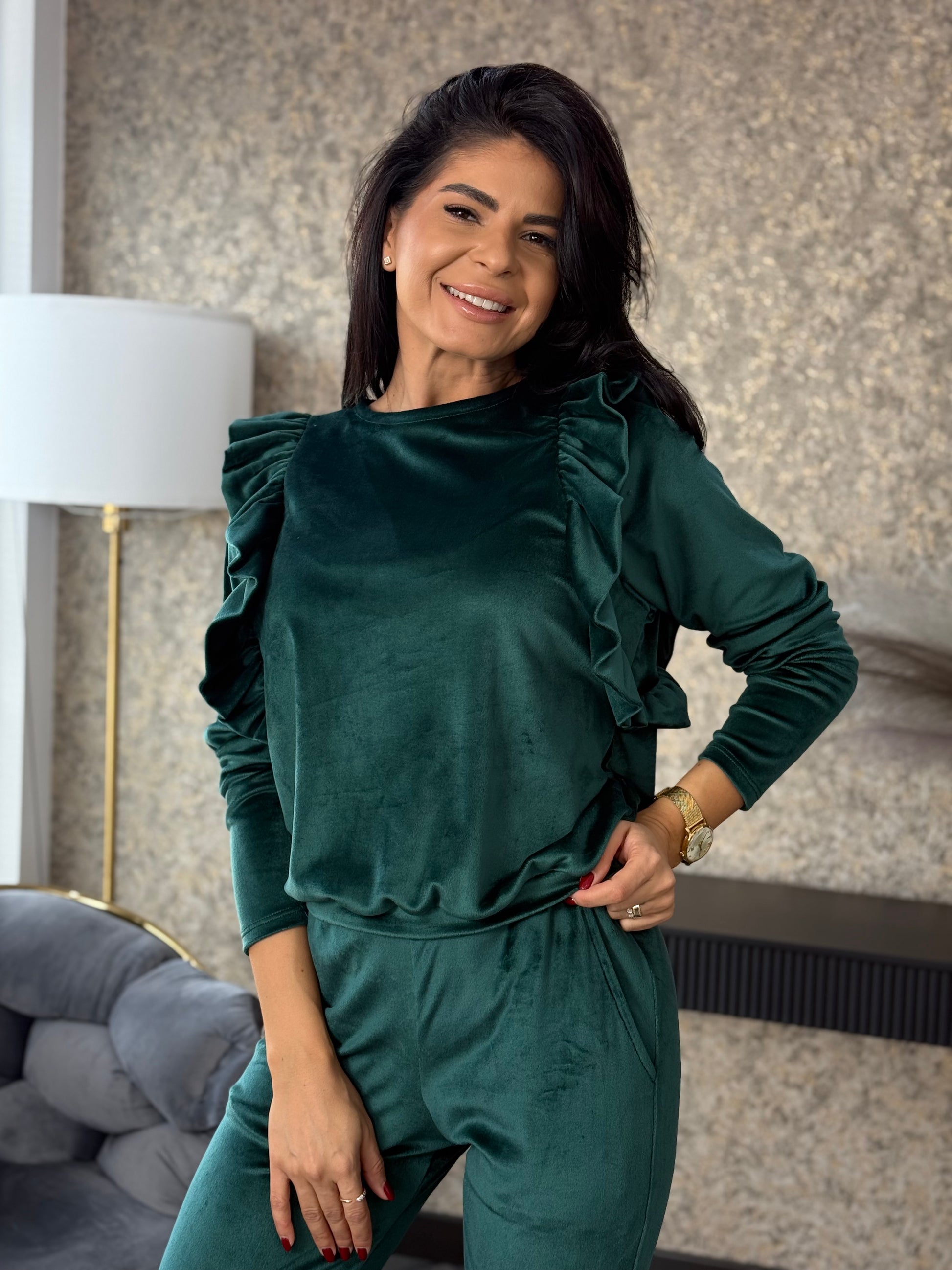 Costumul Ella este realizat din catifea soft, material cu o textura deosebit de fina, moale si placuta la atingere. Este o catifea speciala pentru costume, care va ofera foarte mult confort, dar este si rezistenta in acelasi timp. Poate fi asortat usor, decizia iti apartine. Cu siguranta nu vei da gres!