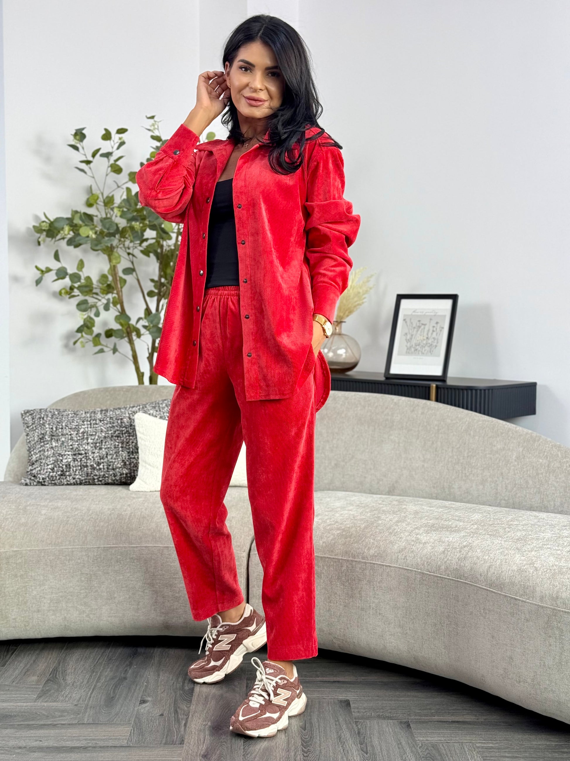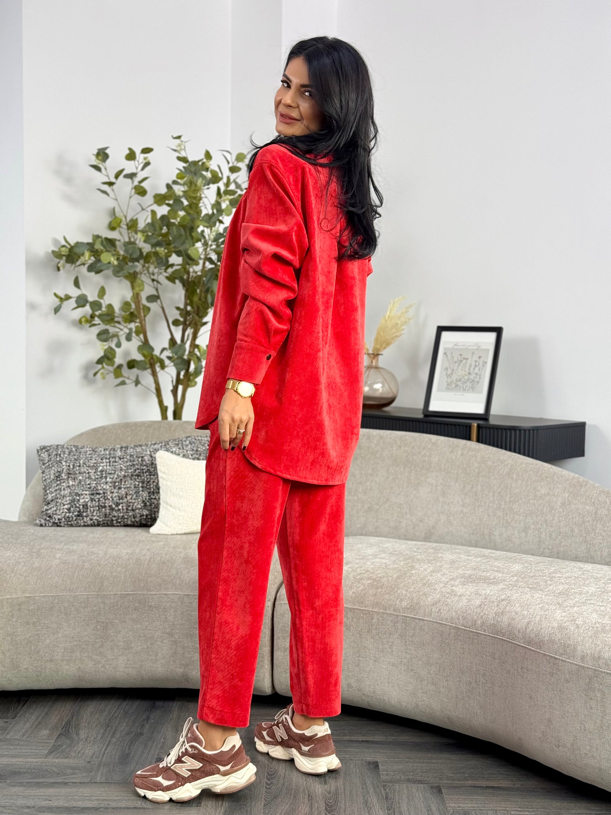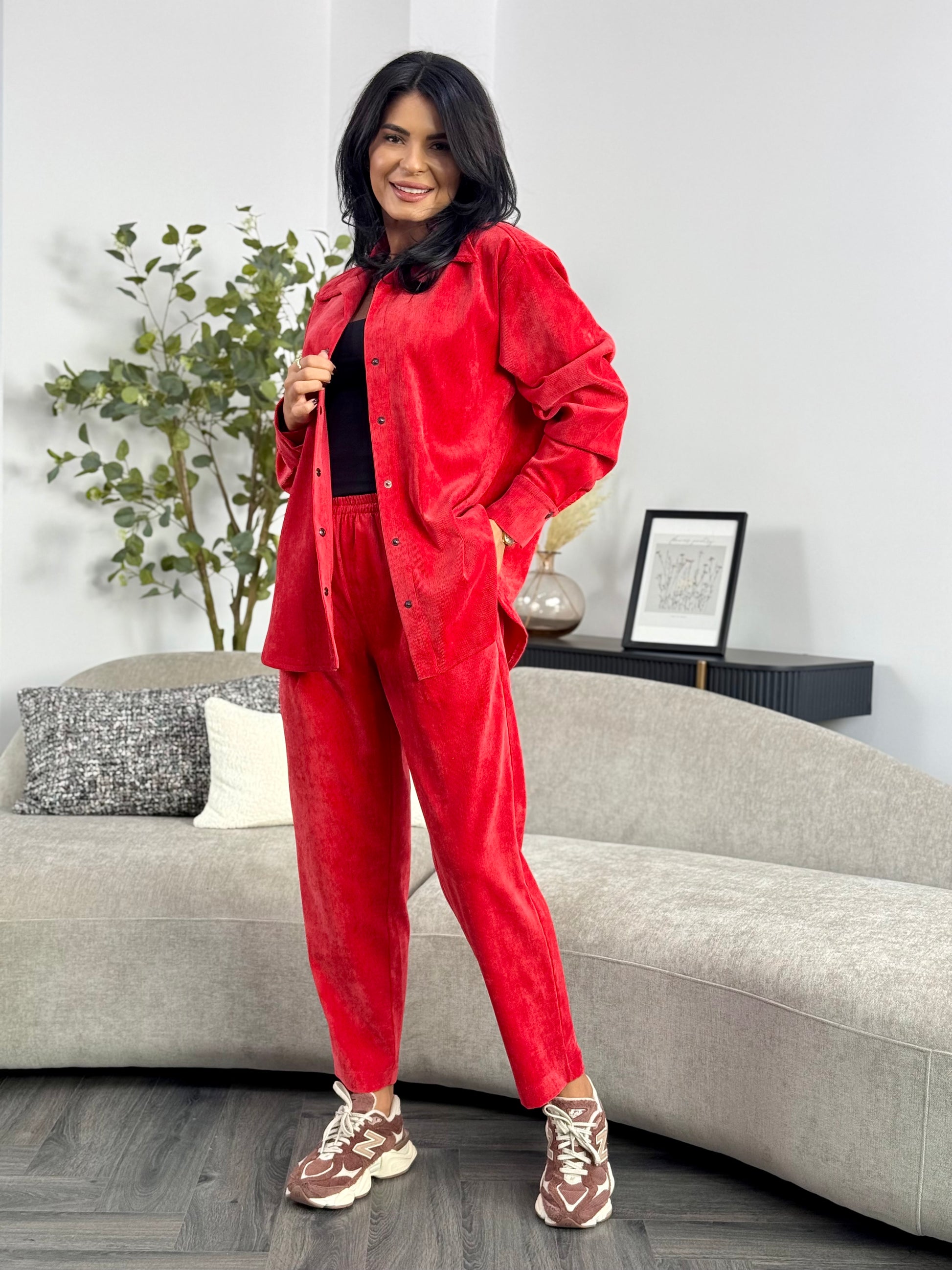 Un outfit lejer și modern, realizat dintr-un material plăcut la atingere, catifea velur, o croială relaxată ce îmbină confortul cu stilul.