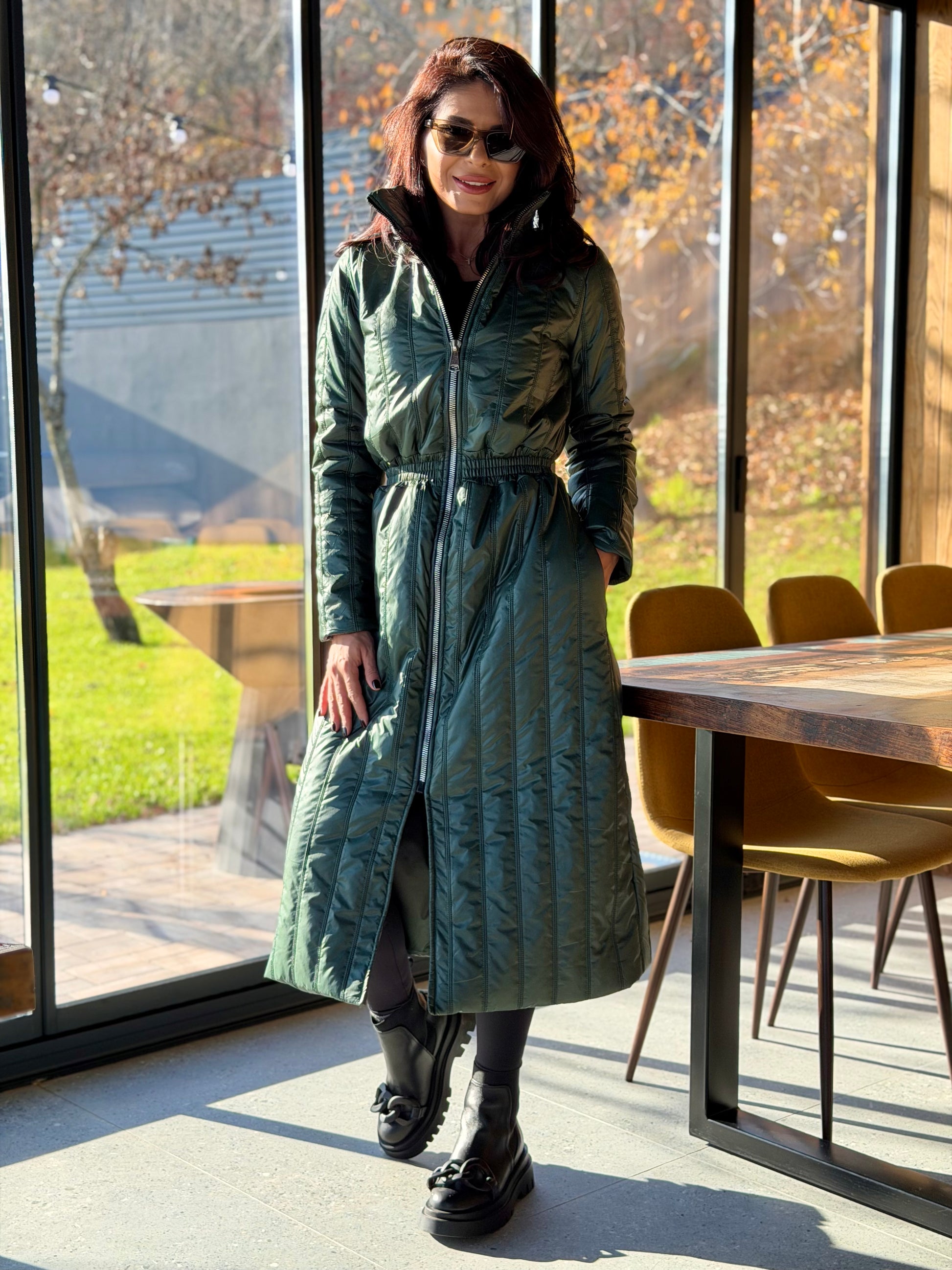 Această geacă matlasată lungă este creată pentru femeile care își doresc confort termic, libertate de mișcare și un look modern în sezonul rece. Realizată dintr-o țesătură ușoară, dar izolantă, geaca oferă protecție excelentă împotriva vântului și menține o linie feminină, fără volum inutil.