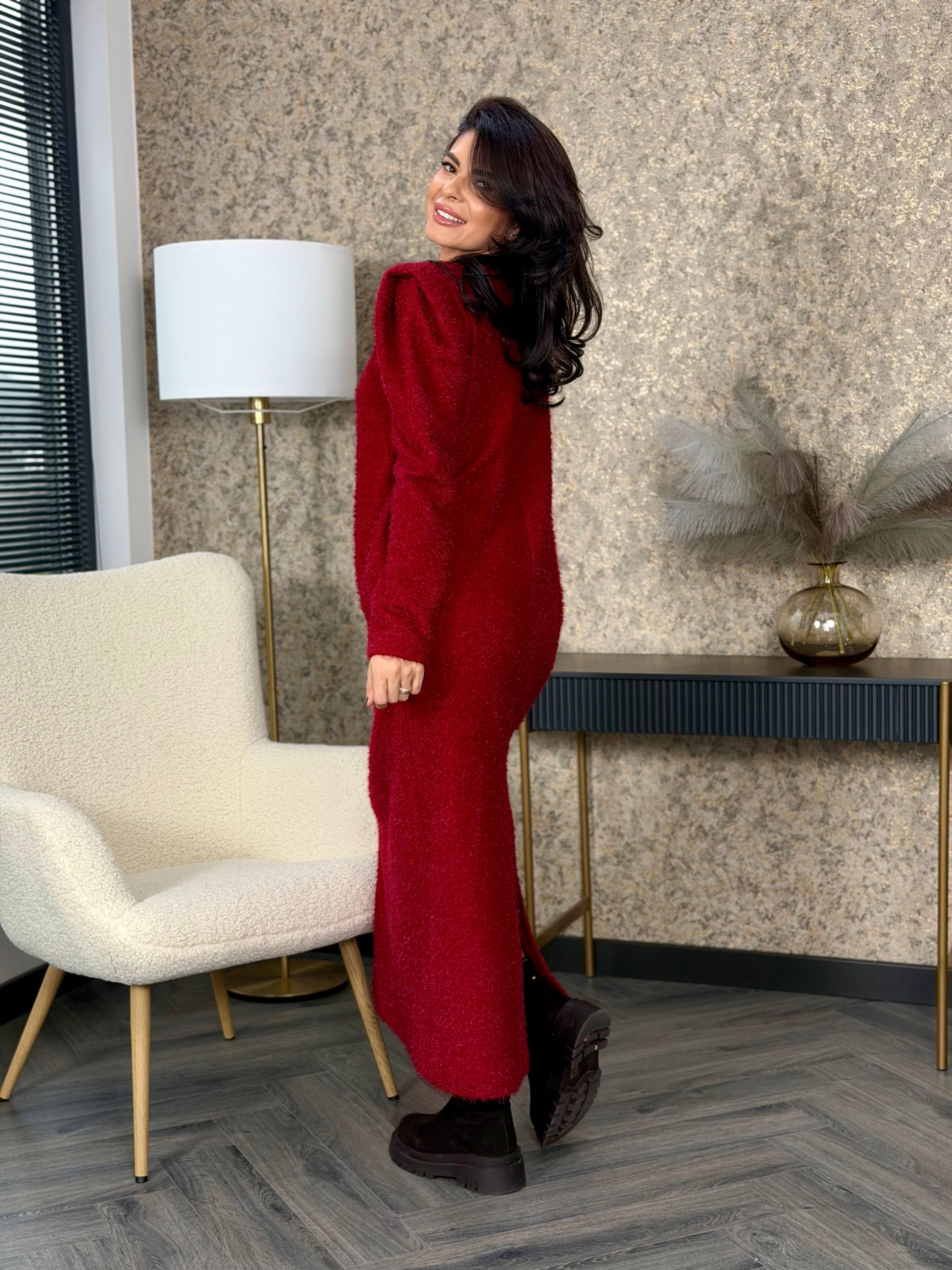 O rochie modernă, realizată din tricot pufos și moale, ideală pentru sezonul rece. Croiala dreaptă alungește silueta, iar umerii bufanți oferă un plus de structură și un efect elegant. Lungimea midi creează un look feminin și echilibrat, ușor de purtat în ținute de zi.
