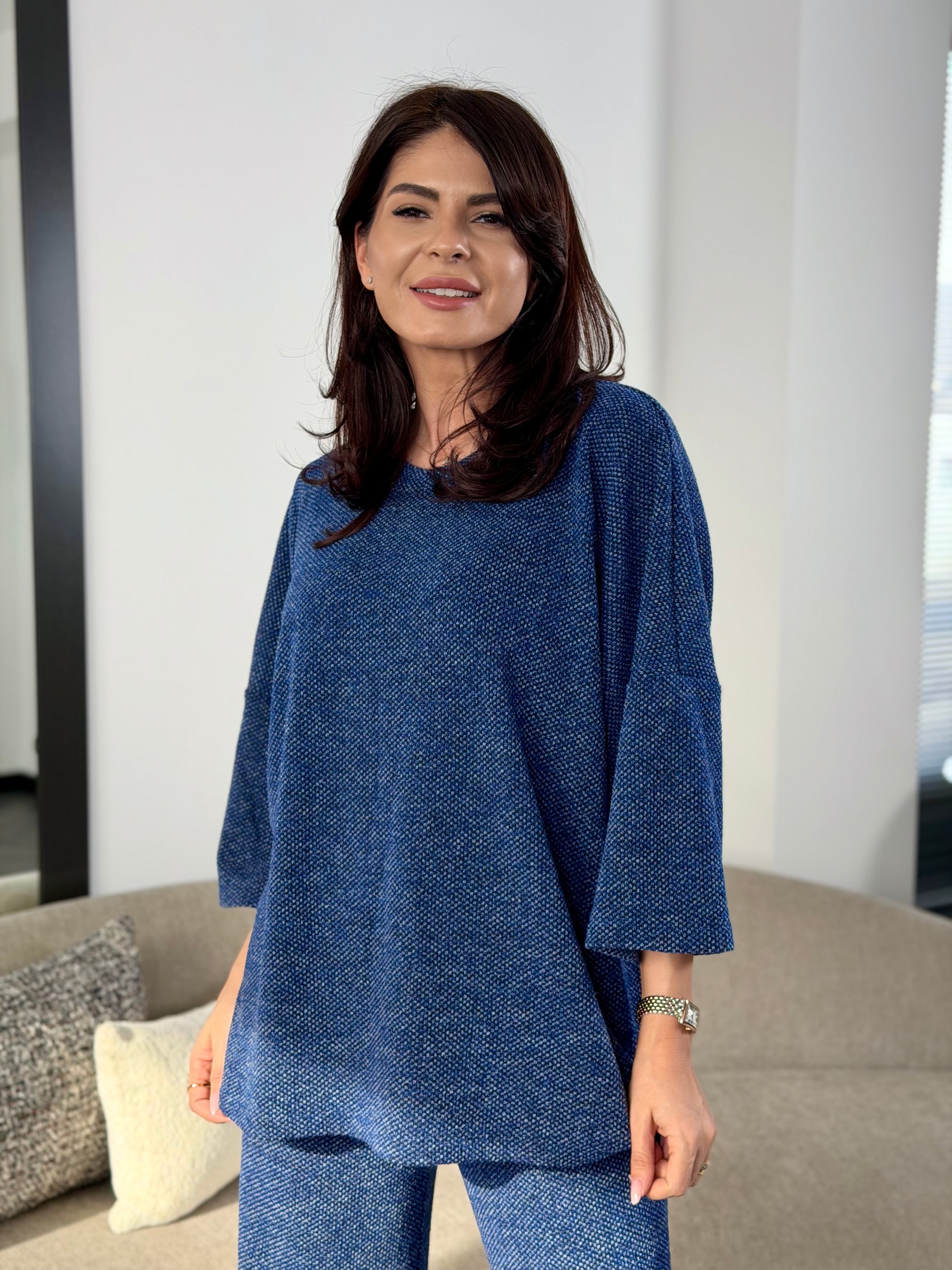 Textura fină creează un efect vizual elegant, fără a încărca ținuta, transformând acest set într-o alegere echilibrată între confort și stil.