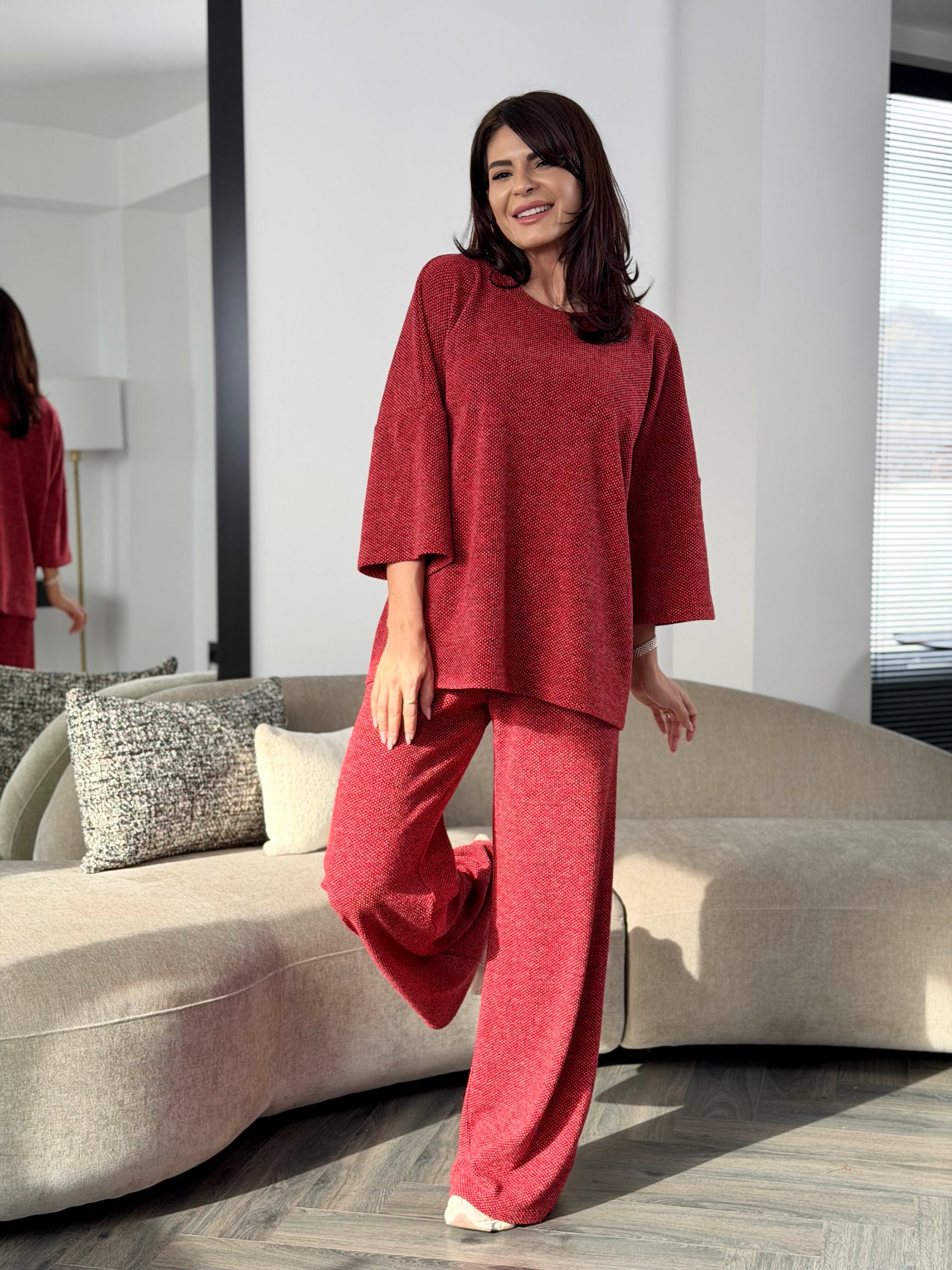 Textura fină creează un efect vizual elegant, fără a încărca ținuta, transformând acest set într-o alegere echilibrată între confort și stil.
