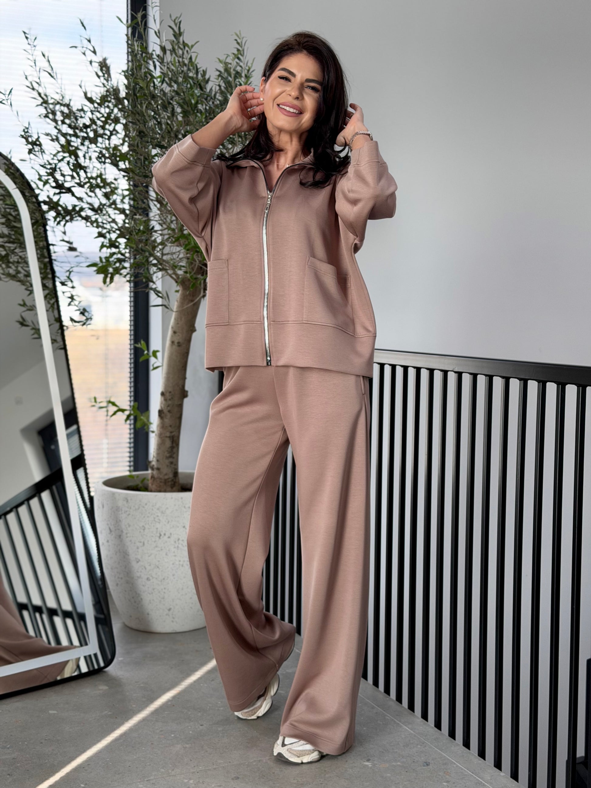 Setul este realizat pe un tipar lejer, modern, cu linii curate și proporții echilibrate, gândit pentru confort și fluiditate.