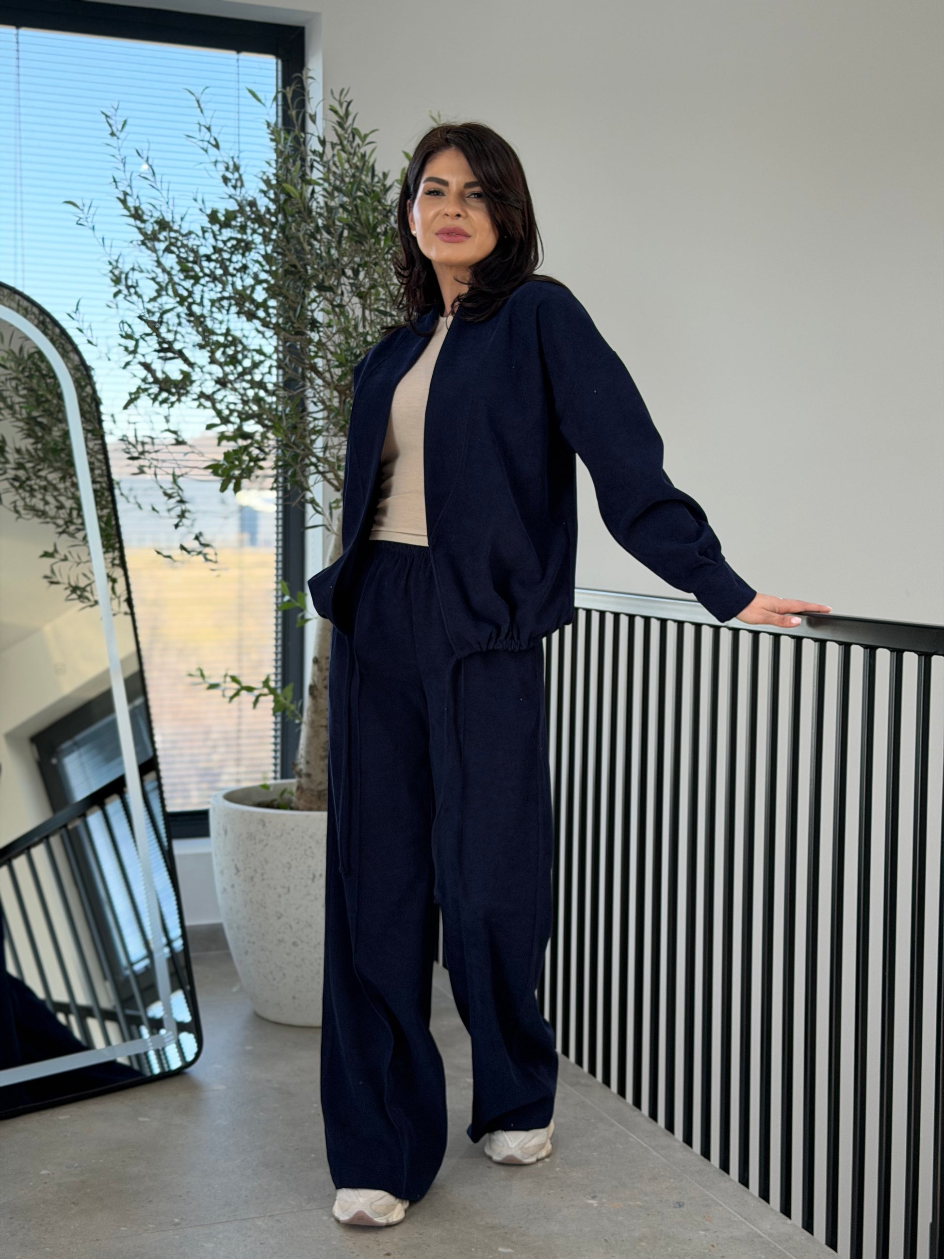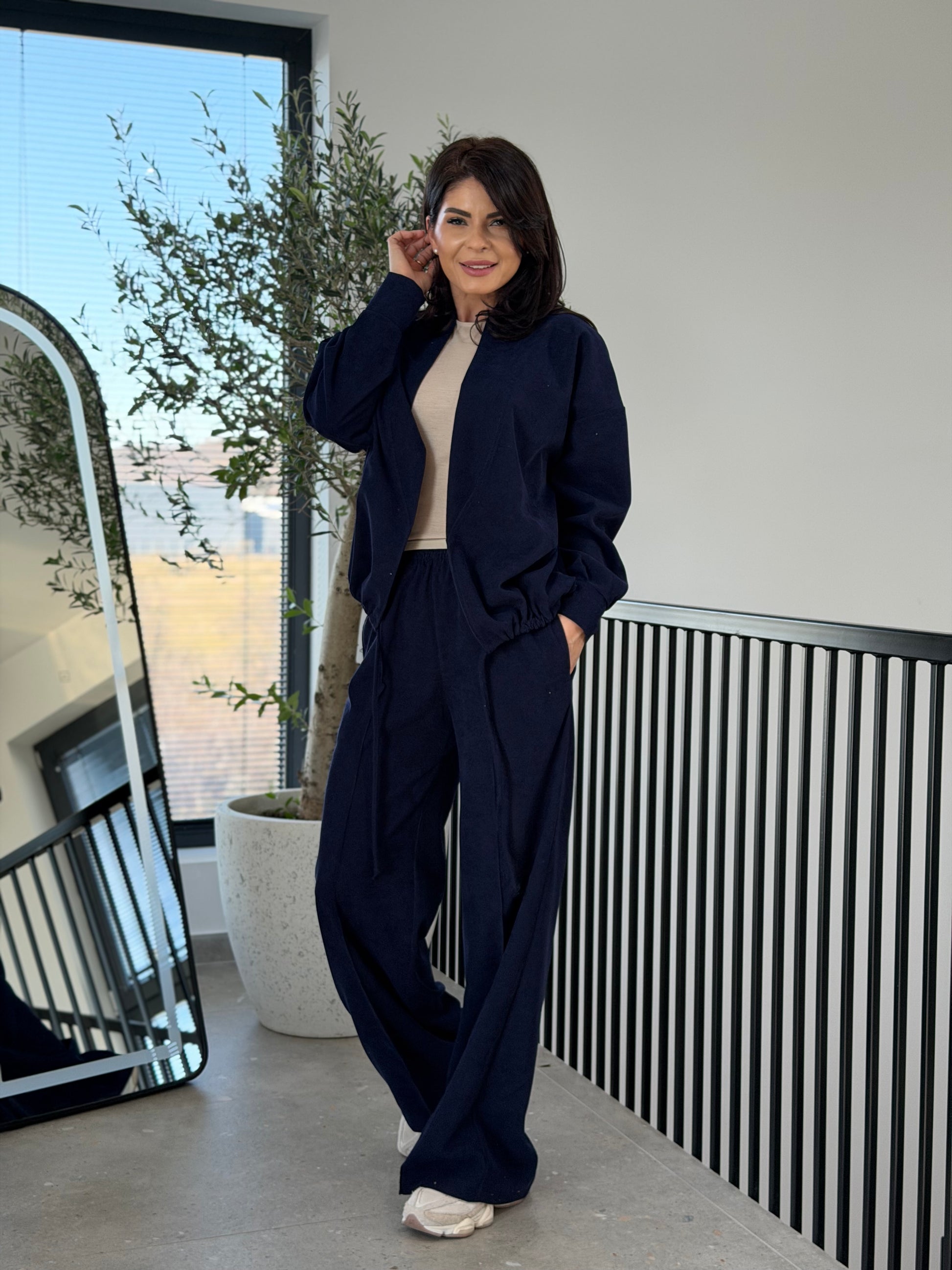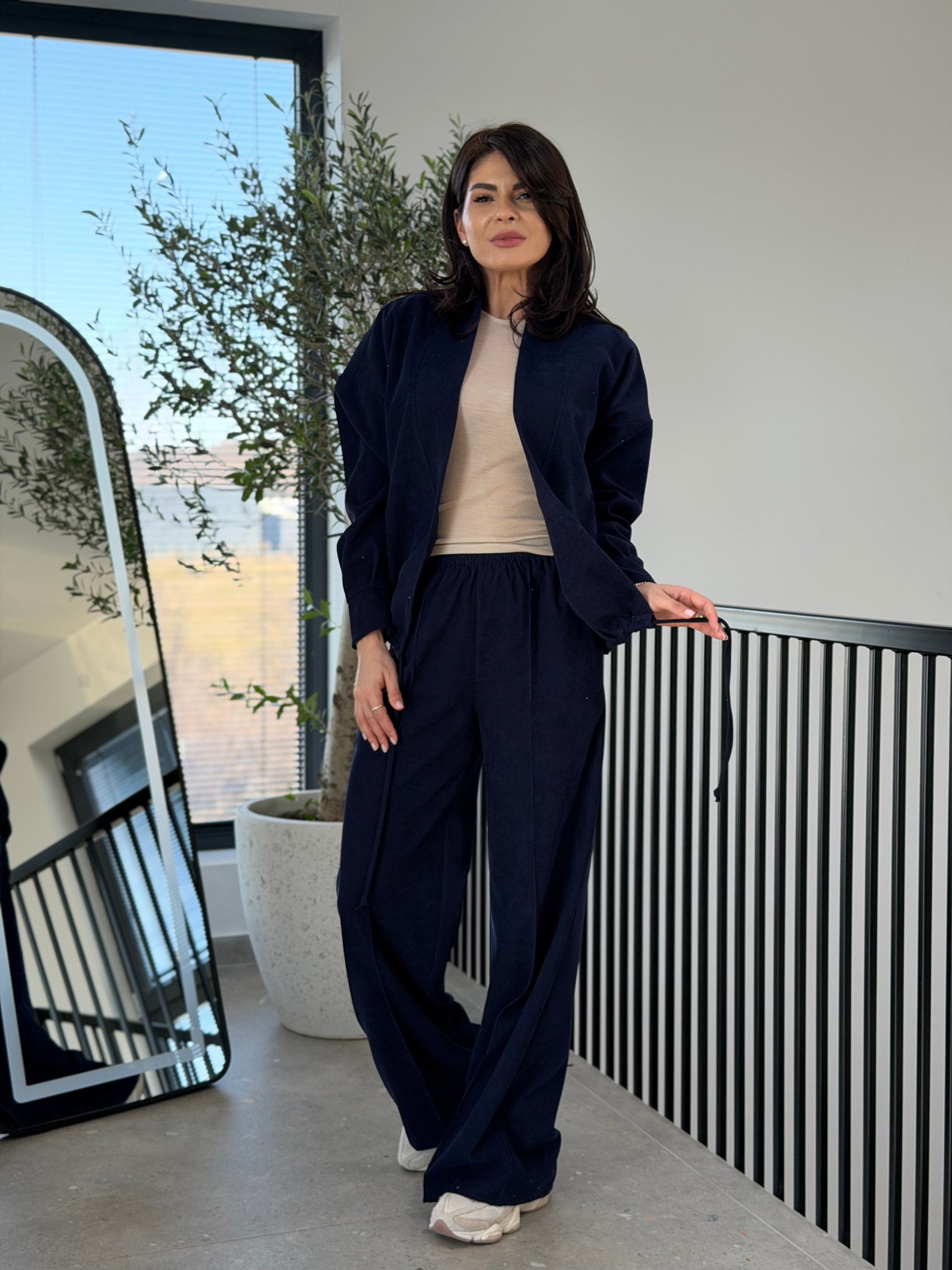 Un set modern din velur, creat pentru femeile care își doresc un outfit casual elegant, confortabil și ușor de integrat în garderoba de zi cu zi. Textura catifelată a materialului oferă un aspect sofisticat, iar croiul lejer creează o siluetă relaxată și feminină.