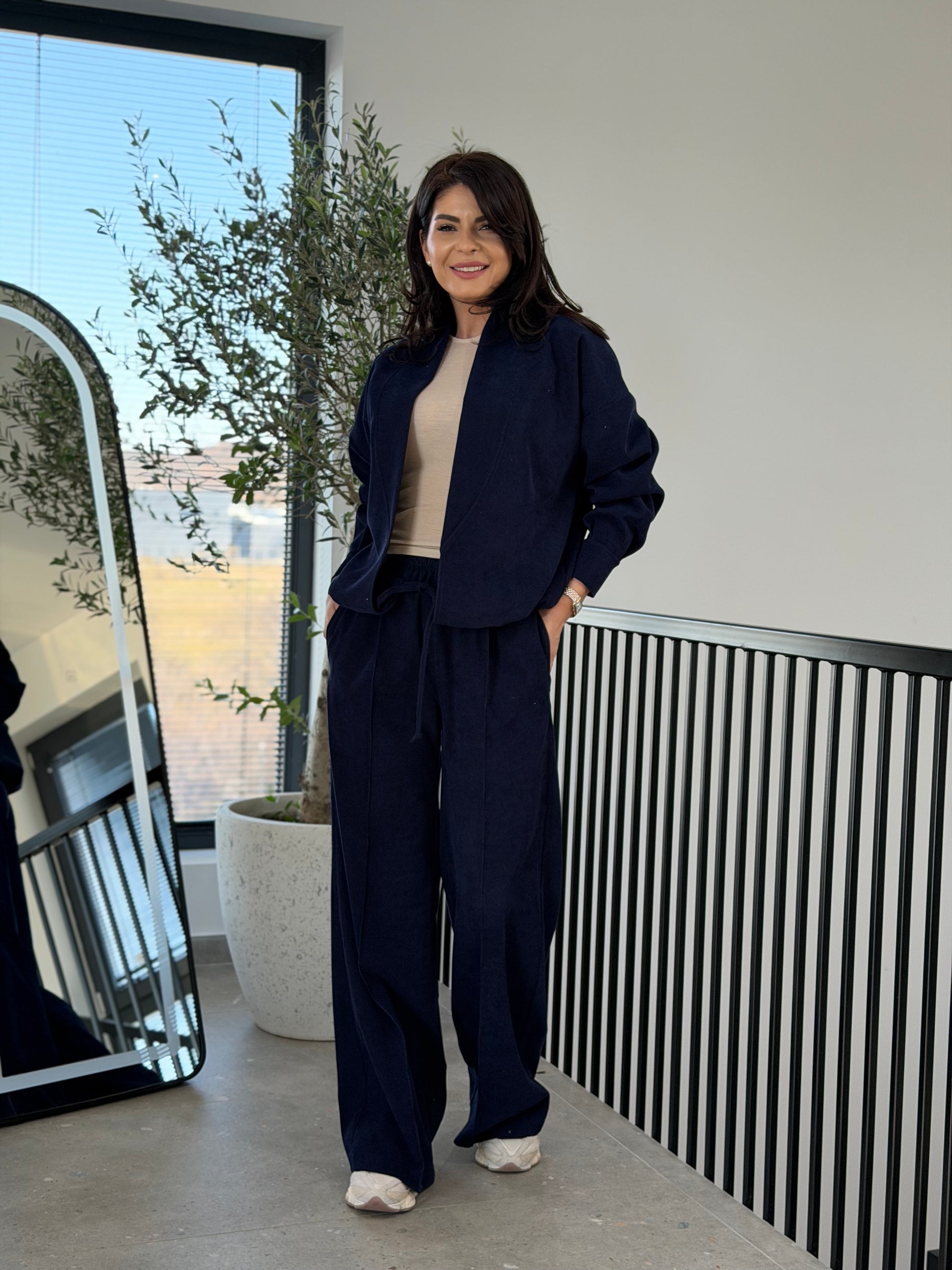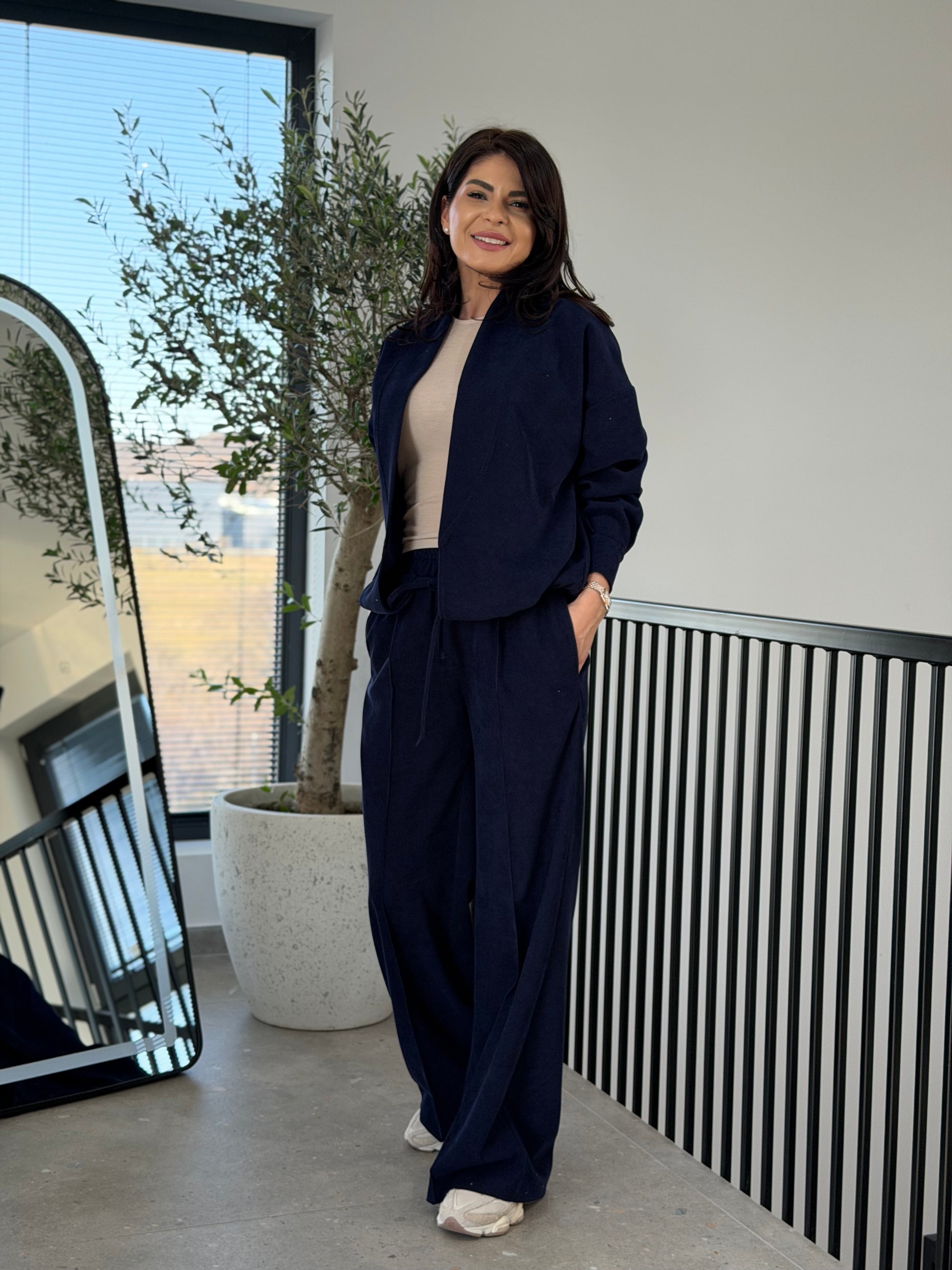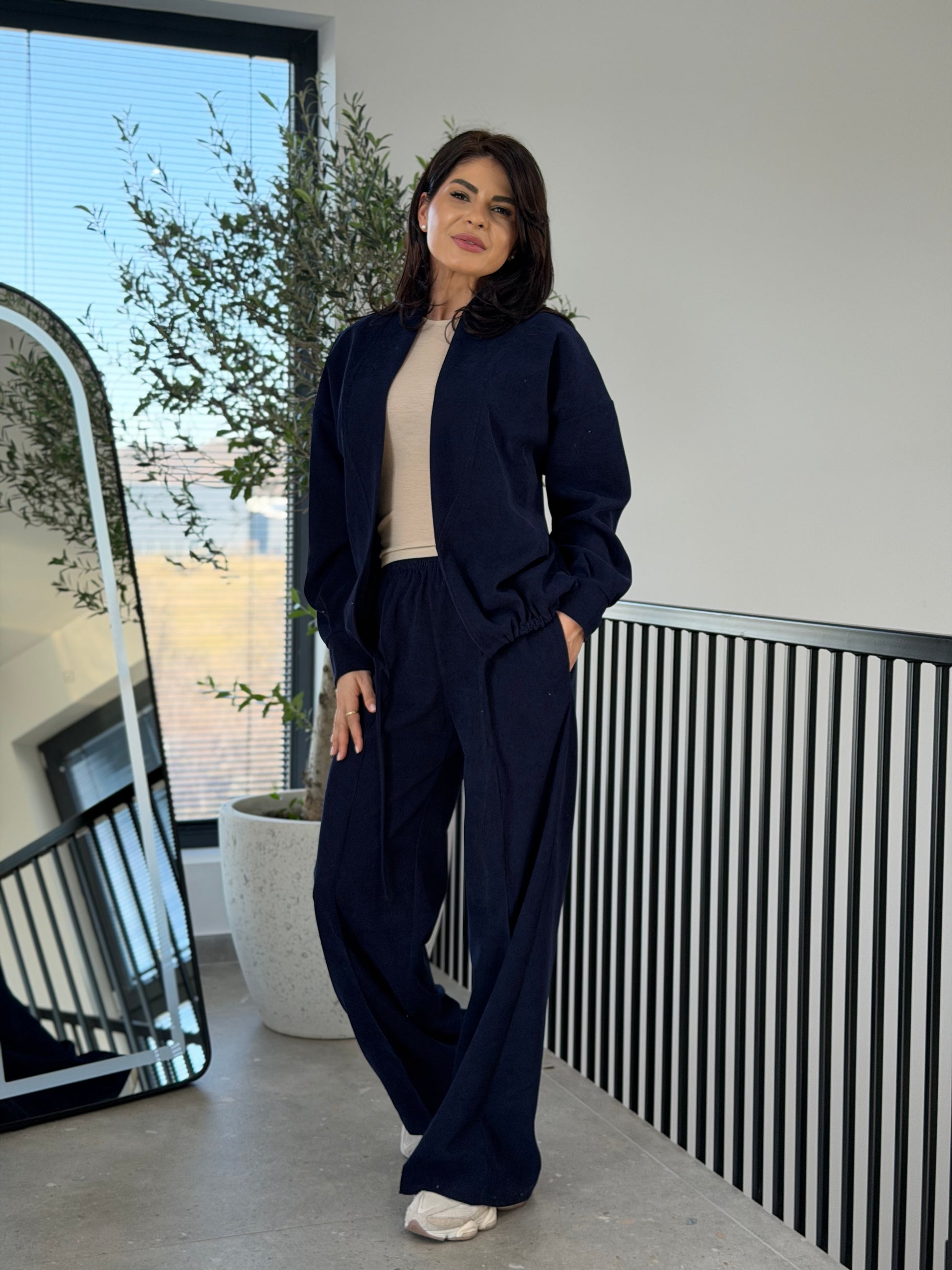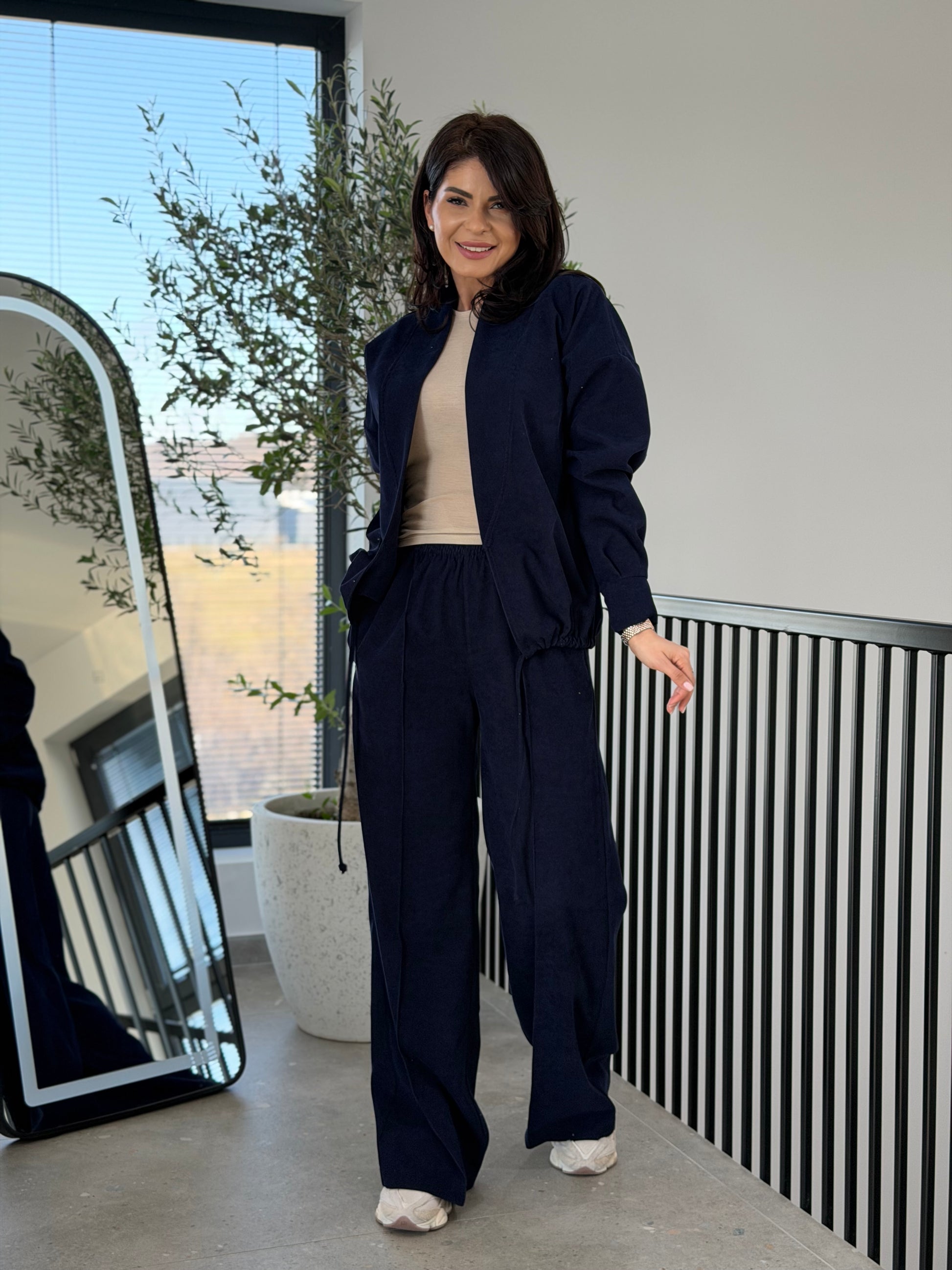 Un set modern din velur, creat pentru femeile care își doresc un outfit casual elegant, confortabil și ușor de integrat în garderoba de zi cu zi. Textura catifelată a materialului oferă un aspect sofisticat, iar croiul lejer creează o siluetă relaxată și feminină.