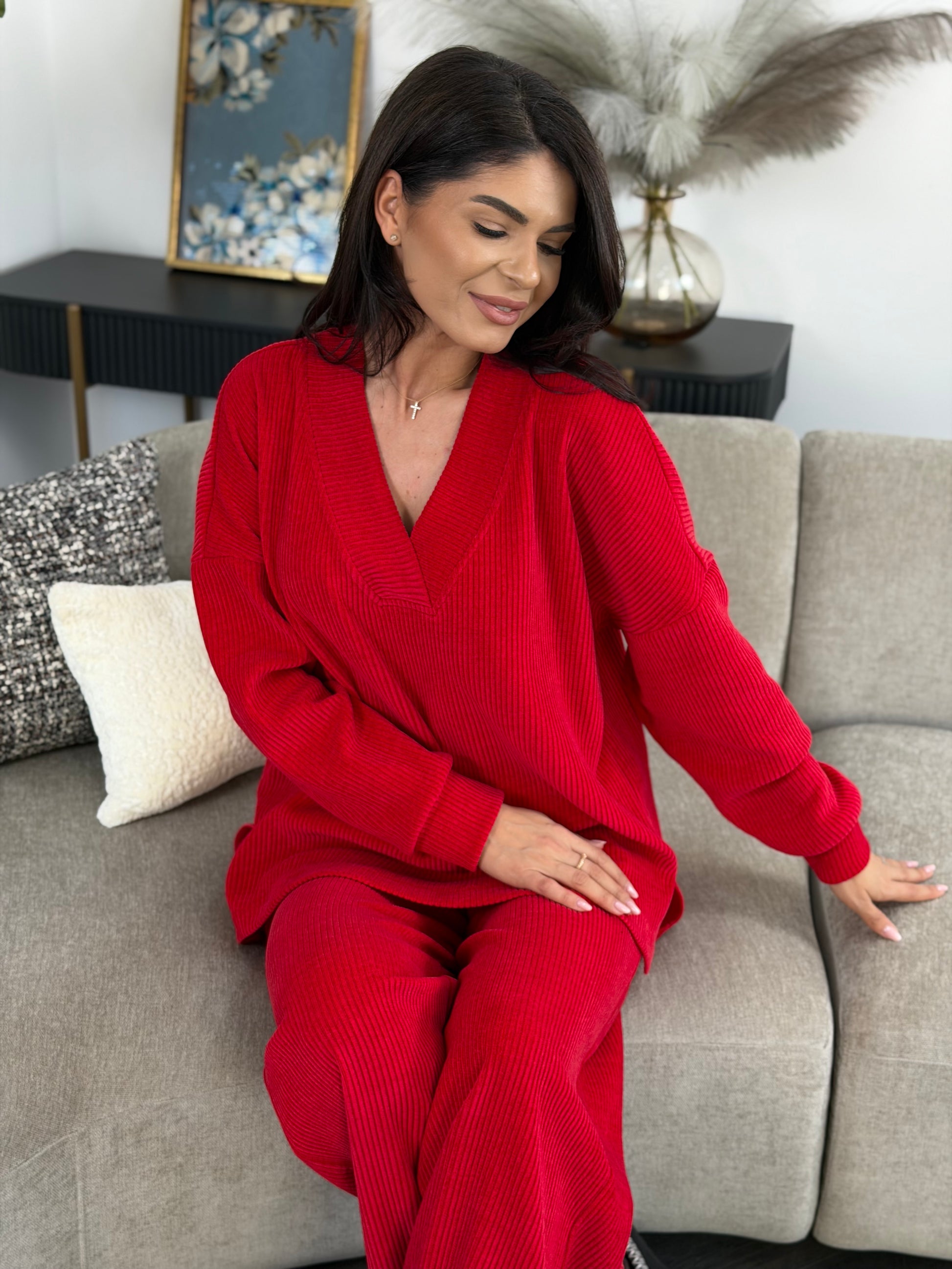 Un set construit pe un tipar echilibrat, ce îmbină estetica modernă cu funcționalitatea, ideal pentru ținute cozy-chic, purtate atât acasă, cât și în ieșiri relaxate.
